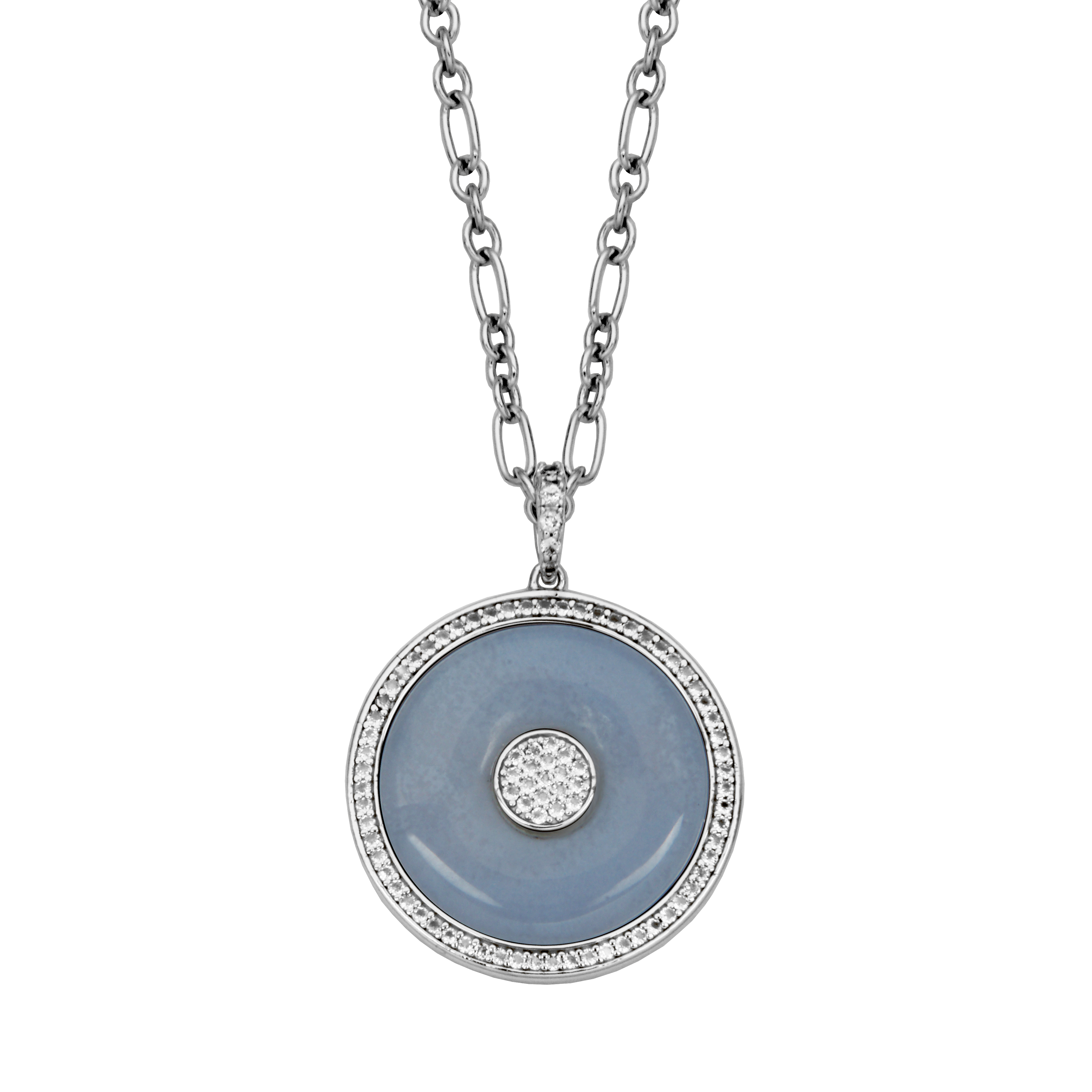(732) 389-9041SS Blue Lace Agate Necklace/White Topaz w/chain
